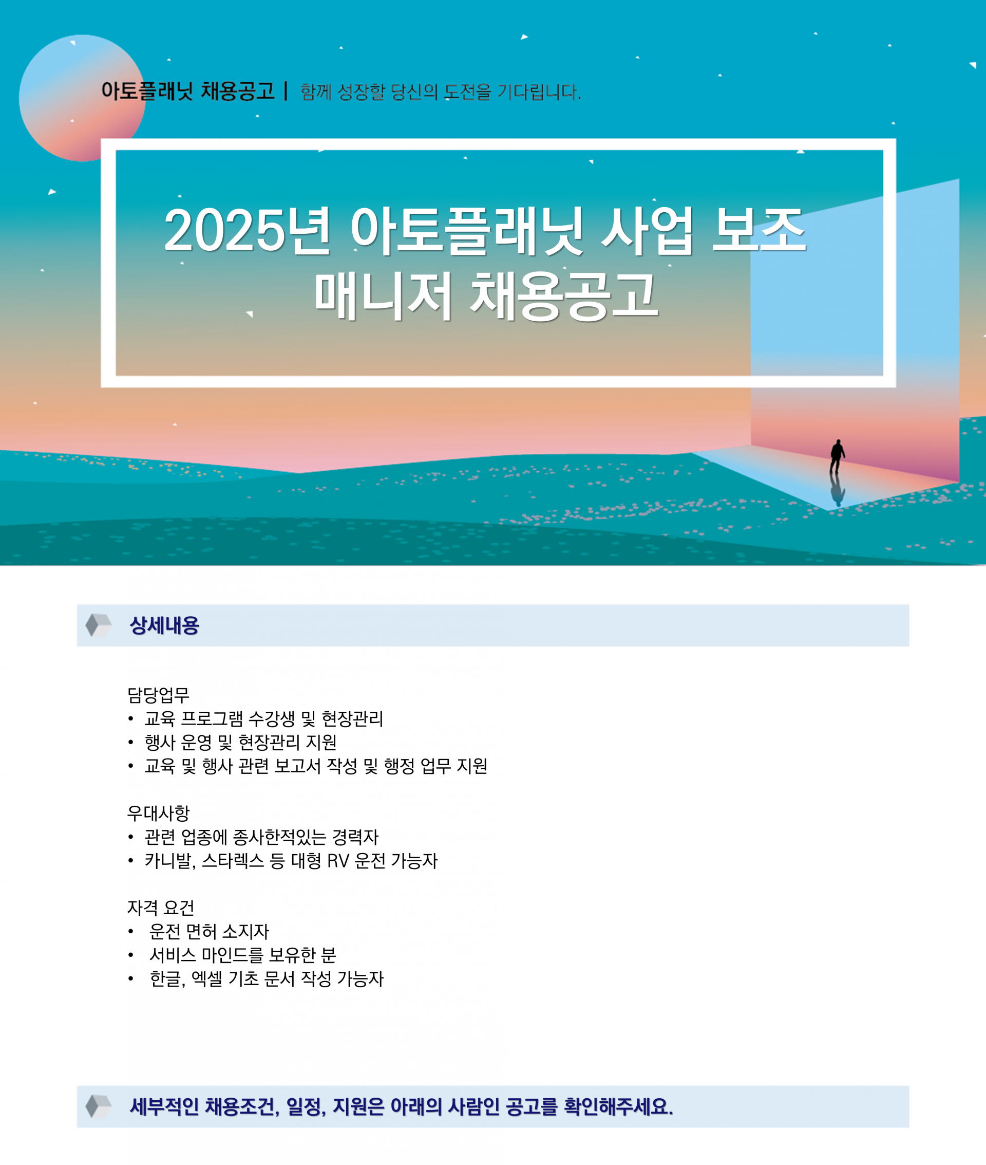 Recruit2025년 아토플래닛 사업 보조 매니저 채용공고